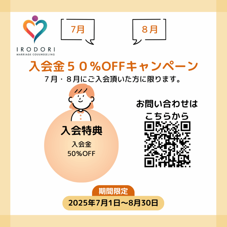 結婚相談所IRODORIです。2月28日まで入会金50%OFFキャンペーンを開催します。少しでも婚活...